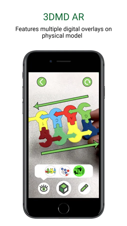 3DMD AR allows students to further explore 3D Molecular Designs’ kits and models through augmented reality-based activities. 3DMD AR uses physical models as AR targets and leads students through digital learning activities. As students progress through AR activities, they will continue to manipulate physical models, actively engaging in making sense of molecular processes through collaboration with classmates.