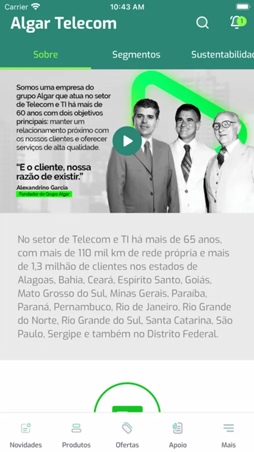 Plataforma que apresenta o portfólio de produtos da Algar Telecom para micro e pequenas empresas com informações comerciais e técnicas, de maneira organizada e intuitiva. É um repositório único para consulta sobre serviços de TI, Internet, Voz, Dados, Outsourcing e UC.