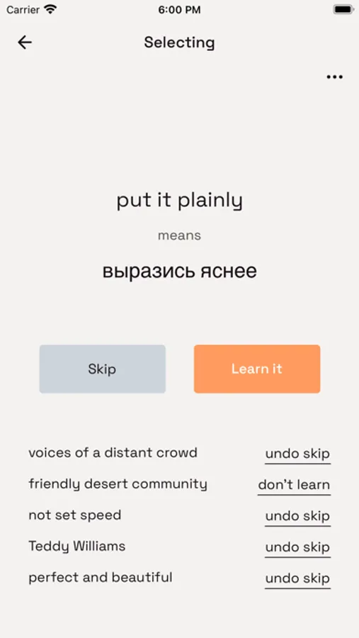 Единый словарь для пользователя - пройденные фразы больше не будут появляться и каждый следующий набор фраз будет все быстрее проходить.
