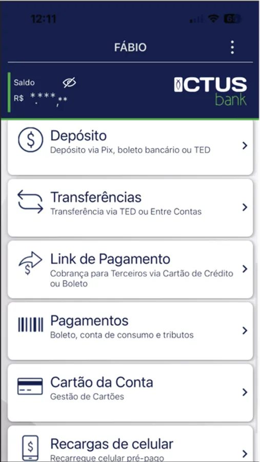 Nele você controla todo o seu financeiro, realiza transações bancárias, pagamentos, transferências, confere seu saldo, recarrega seu celular e muitas outras perações em um só click.