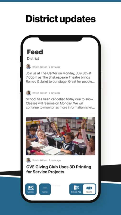 In the Live Feed is where you'll find updates from the administration about what's going on in the district right now. Whether that's celebrating a student's success, or reminding you about an upcoming deadline.