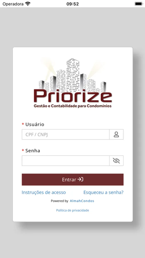 Este aplicativo é exclusivo para usuários da Priorize Condomínios.