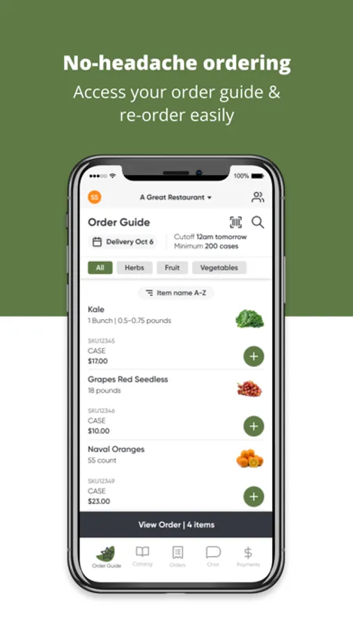 Our mobile app lets you search our complete product catalog, manage and update your ordering guide, and buy what you need at the moment you need it. It’s part of our commitment to giving you an ordering experience you’ll love.
