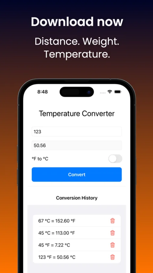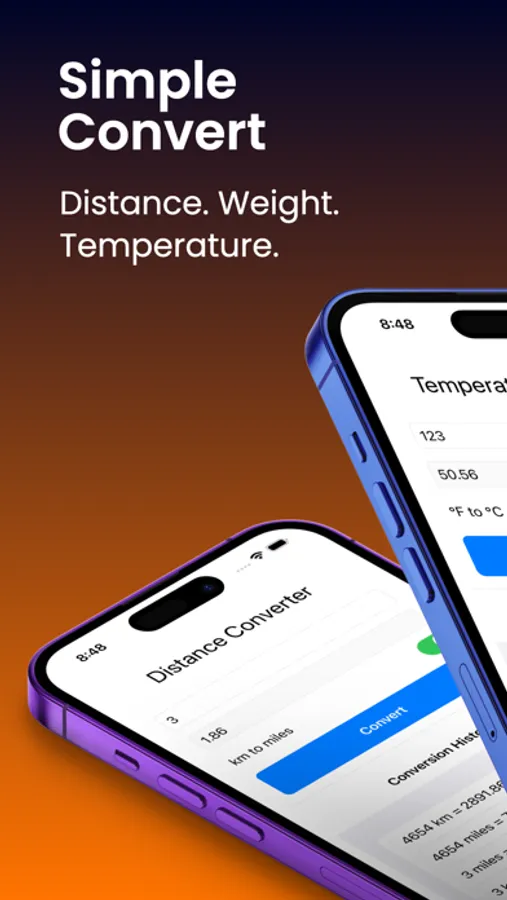 Introducing Simple Converter - the ultimate conversion tool for iOS. With Simple Converter, you can effortlessly convert temperatures, distances, and weights with just a few taps. Whether you need to convert Celsius to Fahrenheit, miles to kilometers, or pounds to kilograms, this app has you covered.