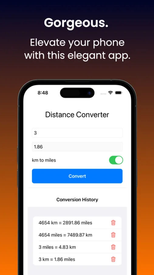 - Distance Converter: Seamlessly switch between miles, kilometers, and meters. Effortlessly convert distances and travel measurements for all your needs.