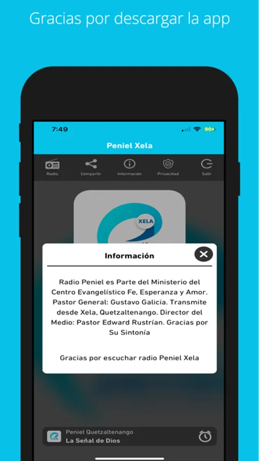 Radio Peniel es Parte del Ministerio del Centro Evangelístico Fe, Esperanza y Amor. Pastor General: Gustavo Galicia. Transmite desde Xela, Quetzaltenango. Director del Medio: Pastor Edward Rustrían. Gracias por Su Sintonía.