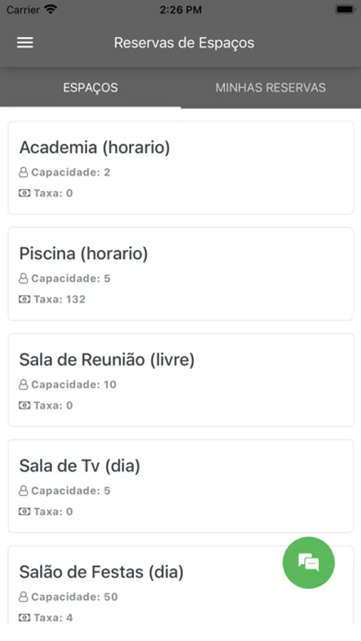 Realizar reservas e consultar a disponibilidade de espaços/serviços comuns;