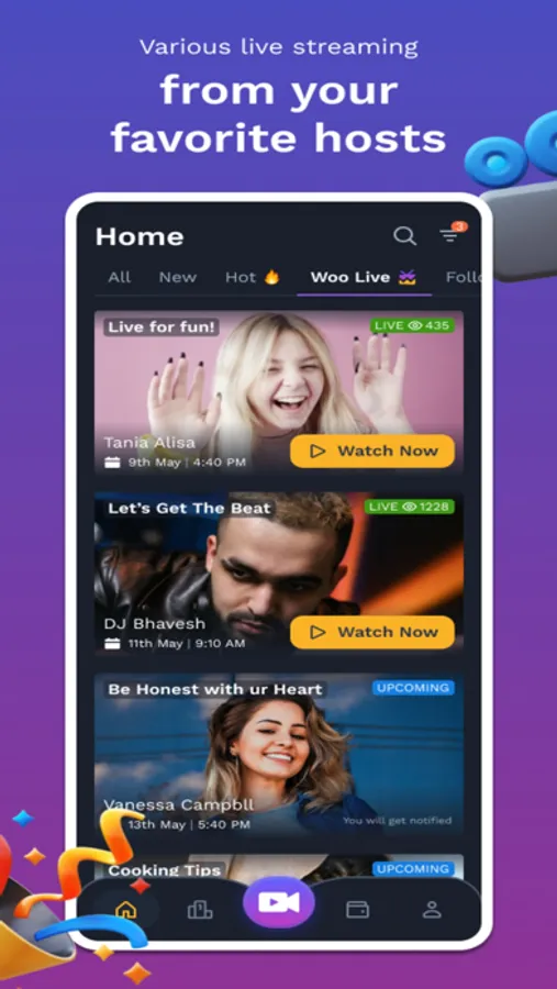 Get ready to join the social entertainment revolution with Woo Tv. Download the app now and have free live video chat, stream your talents anytime, anywhere.