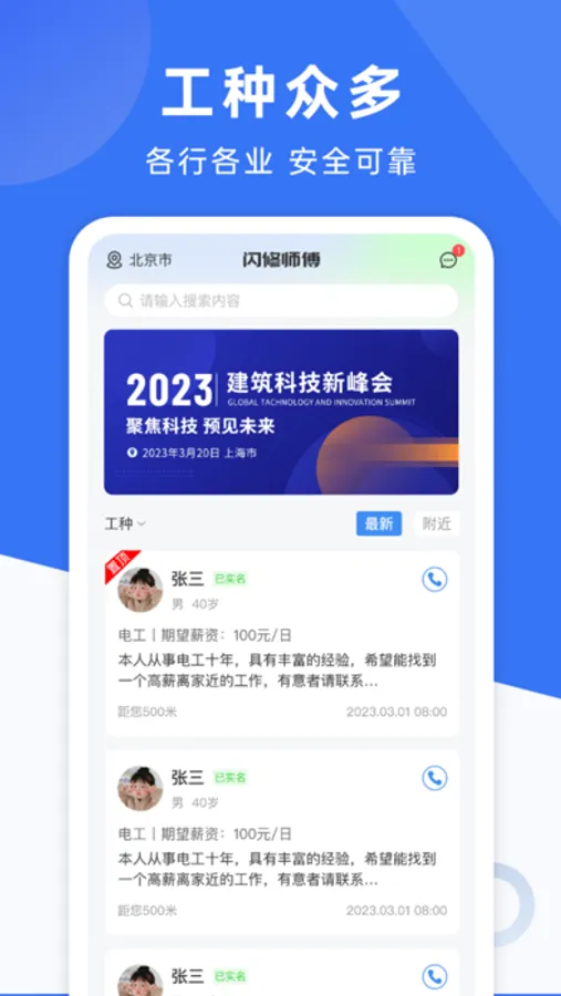 闪修师傅平台汇聚上百个工种类型,线上发布实名制,随叫随到,找懂维修的师傅!