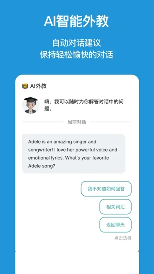 在对话过程中给予指引,协助找到相关的词汇,并创建良好的对话体验。