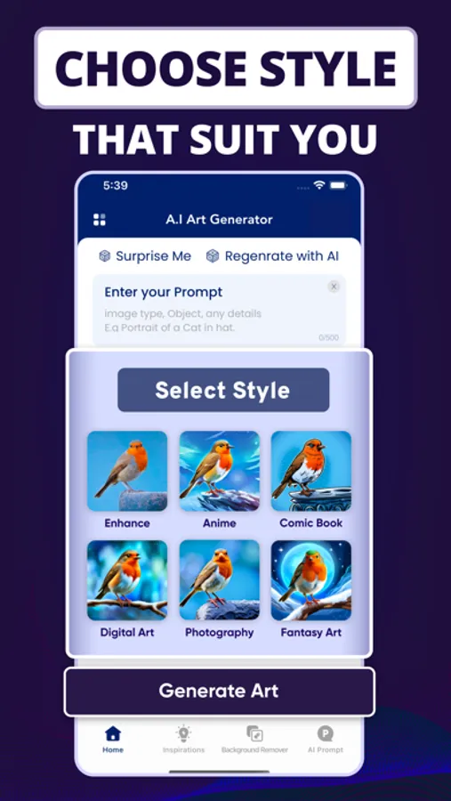 Introducing our revolutionary AI-powered art generation app, where imagination meets technology to unlock a world of artistic possibilities. With our app, you can effortlessly create stunning images in various styles, catering to your unique artistic vision.