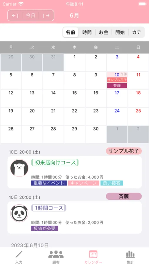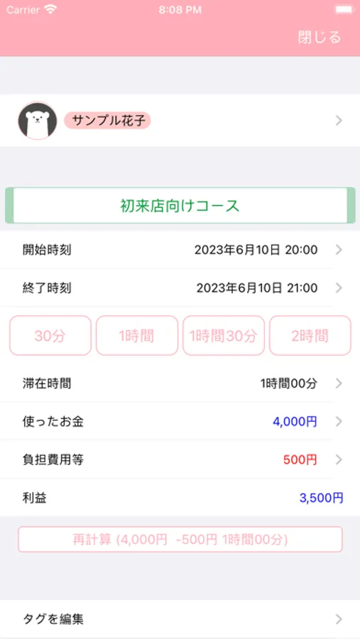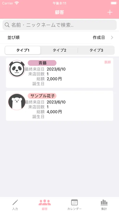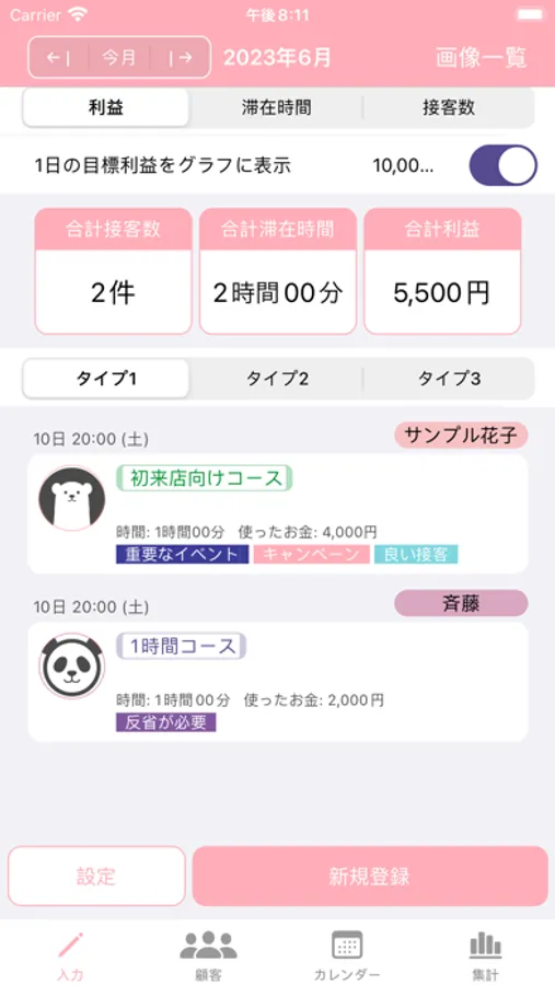 顧客ごとに写真やメモ、売上や負担金などの登録が可能です。