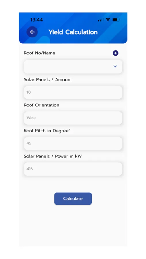Calculate the yield of the photovoltaic system with roof-specific information such as the direction and the angle of inclination based on the number of solar modules.