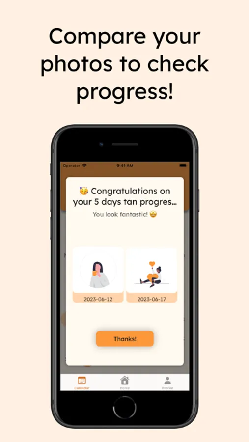 Compare Photos: Capture your sun-kissed moments with Tanly's photo comparison feature. Regularly take pictures of your body to visually track your tanning journey. Witness the gradual transformation and share your incredible results with friends and family, all conveniently stored within the app.