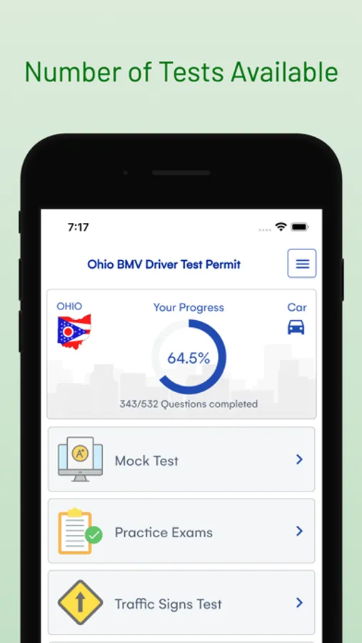 Our Ohio OH Driver Test Permit app , is easy to use and accessible from anywhere, on any device. You can practice on your phone, tablet, at home or on the go. And with our free and unlimited tests, you can practice as many times as you need to feel comfortable and confident for the real DMV Written test .