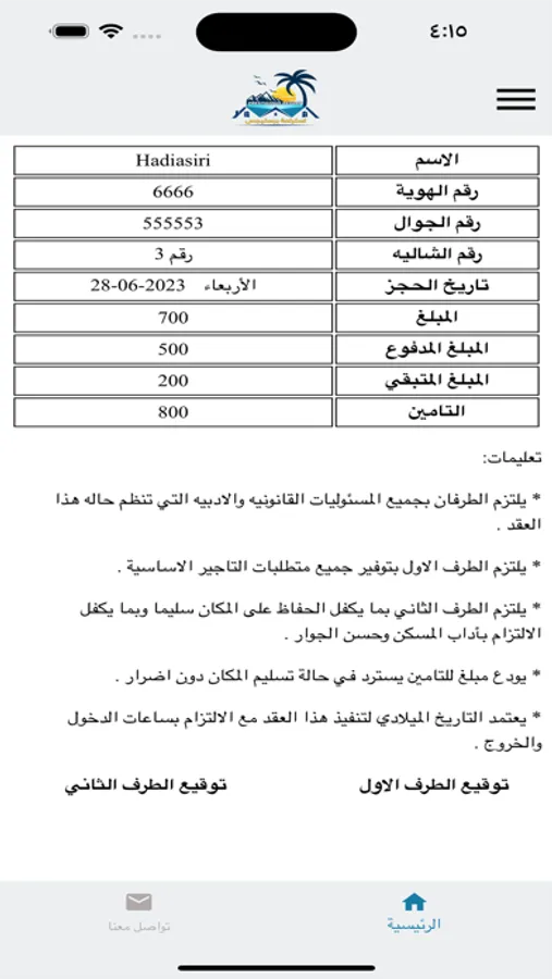 تطبيق استراحة برستيجس يحتوي على التالي: