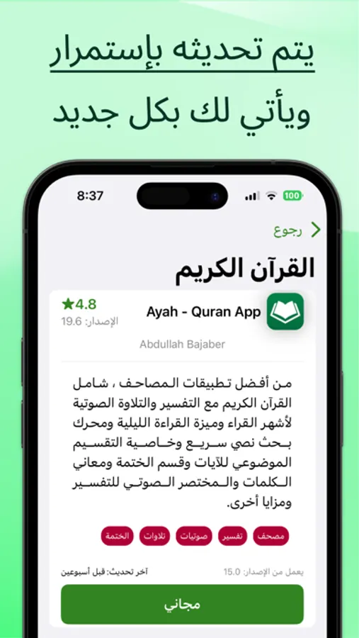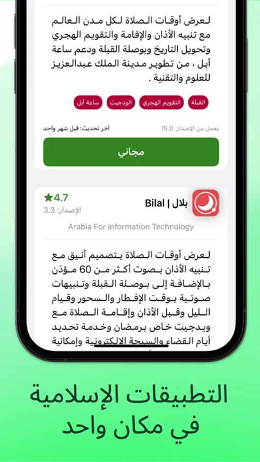 " التطبيقات الإسلامية " مجاني يوفر لك سهولة الوصول إلى التطبيقات الإسلامية الموثوقة والمتاحة على متجر آبل في مكان واحد ، مما يجعل عملية العثور على تطبيق إسلامي أكثر كفاءة ومتعة .. جرّبه الآن!