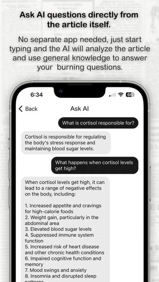 You can go deeper on articles you're interested in by asking AI direct questions, as if you were talking to the author themself. Just type a message and hit send, and AI will respond answering your burning questions!