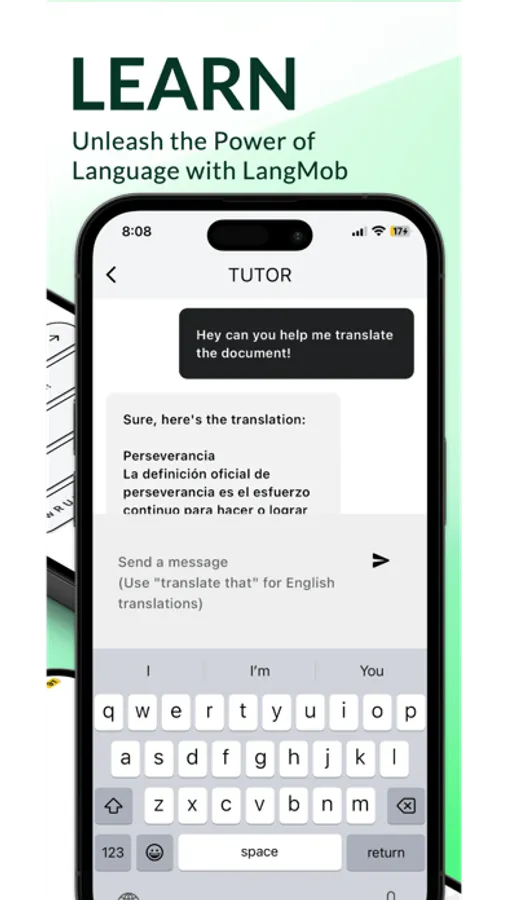 Take your language skills to the next level by working with authentic documents and texts.LangMob allows you to upload and analyze documents, such as articles, essays, or emails, providing detailed feedback on grammar, sentence structure, and vocabulary usage. This feature helps you refine your writing skills, ensuring your written communication is accurate, professional, and well-crafted.