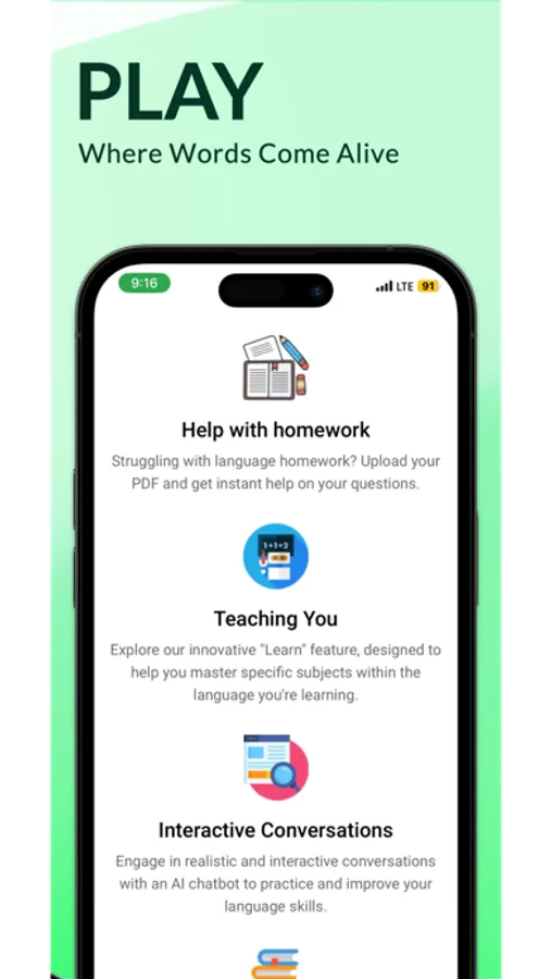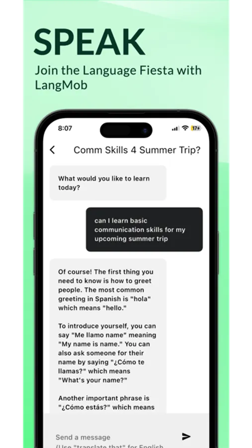 LangMob offers a structured learning approach through its personalized lesson plans. Based on your proficiency level and learning goals, the app creates a tailored curriculum that covers various language topics, including vocabulary, grammar, idioms, and more. You'll work alongside the AI as your virtual tutor, receiving interactive lessons, exercises, and quizzes to reinforce your understanding and retention.