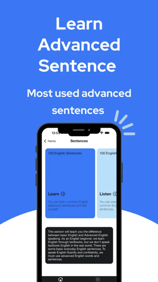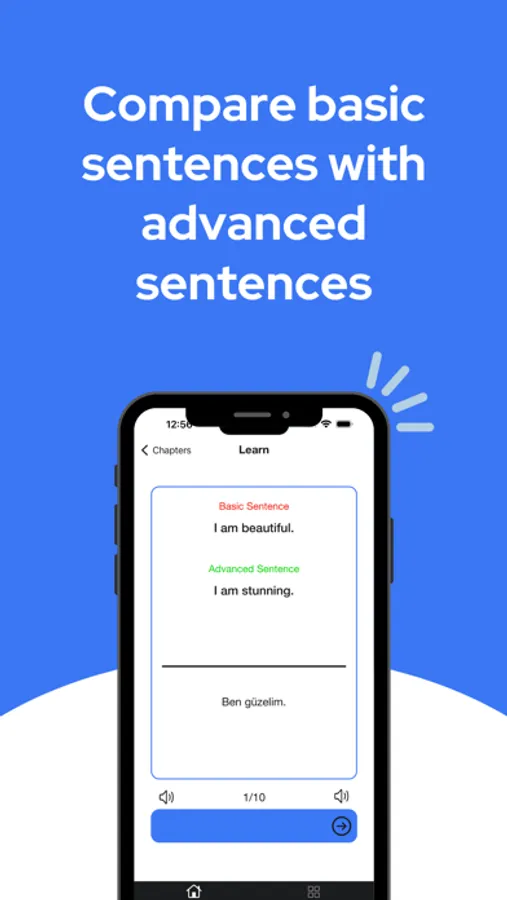 It is also possible to learn advanced sentences in our application. Advanced sentences help you further develop your language skills and prepare you to speak fluently. The sentences in our application reflect real-life situations and focus on communication scenarios that users may encounter in the real world.