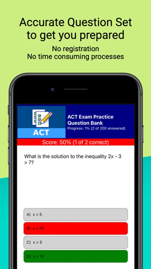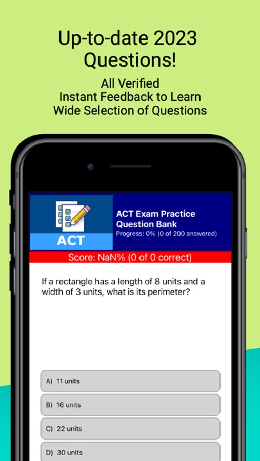 100% accurate practice exam question set for the ACT (American College Testing) Exam.