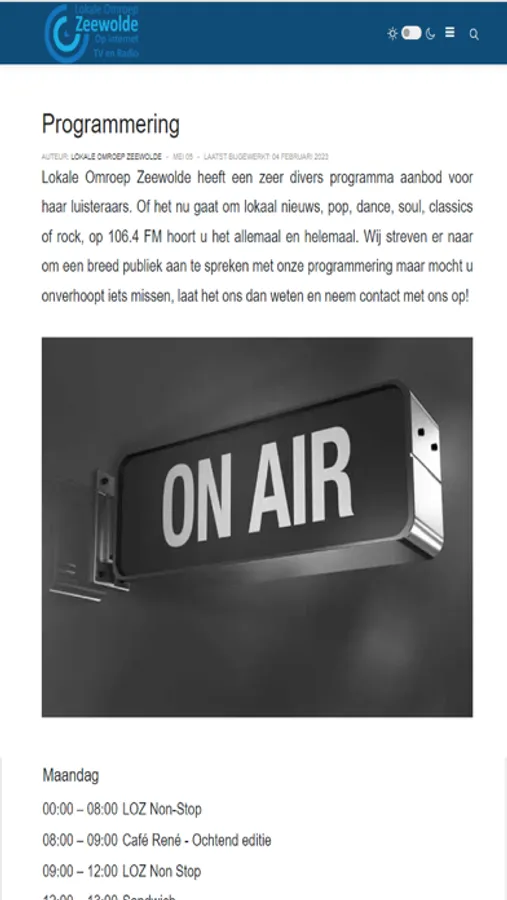 Lokale Omroep Zeewolde is uw nieuwsplatform voor Zeewolde (Flevoland) en beschikbaar op kabel, FM, APP en internet. Hier verspreidt LOZ haar programma’s aan de inwoners van haar verzorgingsgebied. Dit gedurende de periode van 24 uur per dag, 7 dagen in de week.