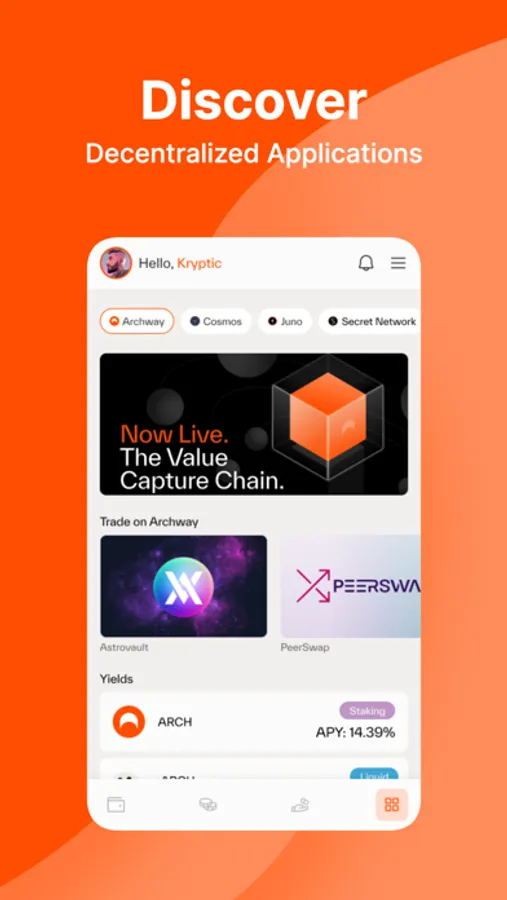 With a keen emphasis on user experience, ArchX Wallet allows you to discover, store, manage, and transfer your digital assets with unprecedented ease. Our intuitive interface brings the vast possibilities of the ecosystem right to your fingertips. It's more than a wallet—it's your key to unlocking all that Archway and Cosmos have to offer. Catering to both seasoned crypto users and beginners, ArchX Wallet transforms your crypto journey into an exploration of discovery. Dive into an immersive crypto universe with ArchX Wallet today.