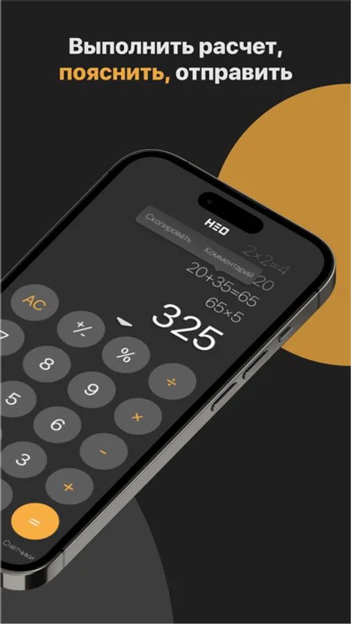 Классический, но с небольшим дополнением. Историю вычислений можно развернуть на весь экран, дополнить комментариями и отправить скриншот своему партнеру или сотруднику.