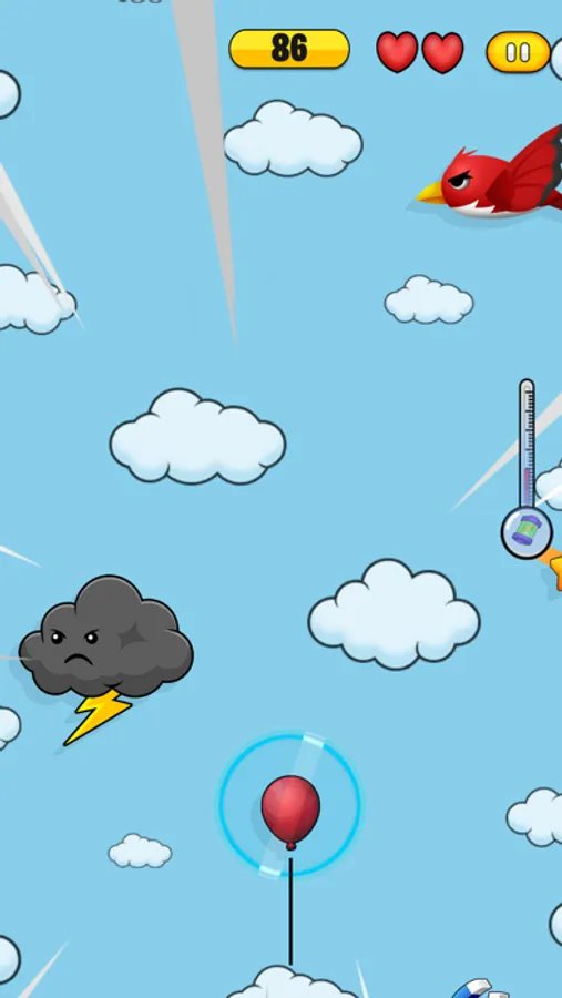 The game starts with your balloon at ground level, and you must tap the screen to make it rise. Be careful though, as you'll need to avoid hitting objects such as birds, clouds, and even meteorites, or your balloon will pop and it's game over. Along the way, you'll collect stars that can be used to unlock new skins, each with its unique design and style.