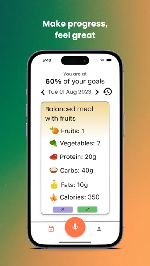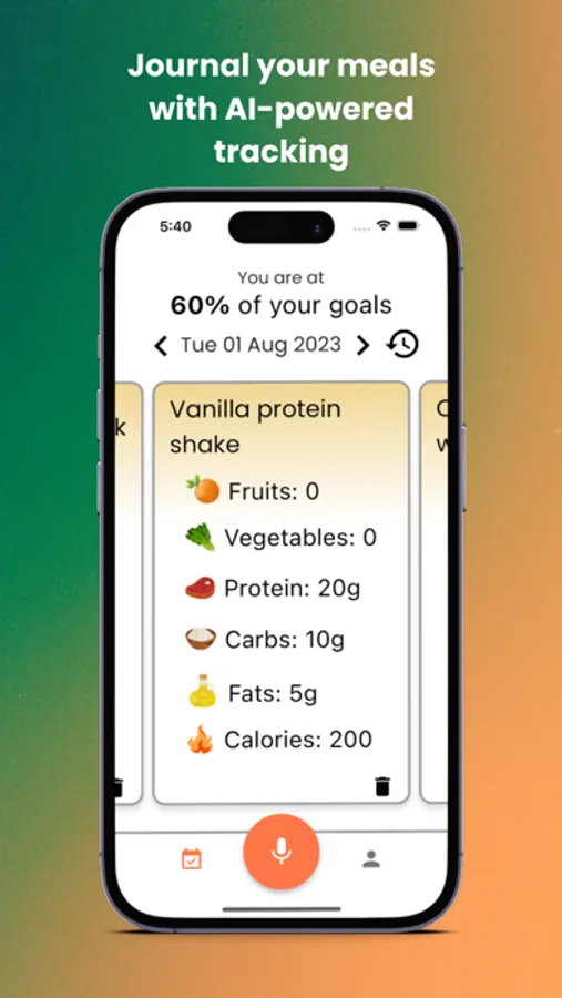 NutritionBuddy approaches nutrition and tracking differently, through journaling. Counting calories and doing precise tracking can be effective for some people, but it can also be boring and prevent you from progressing further in your nutrition journey. That is why NutritionBuddy uses the power of speech recognition and artificial intelligence to generate estimates of your meals based on simple descriptions.