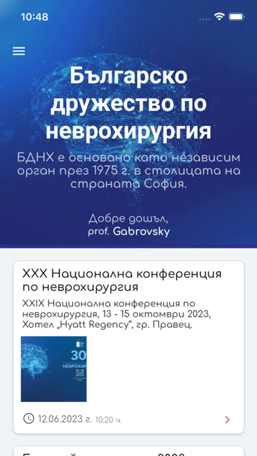 The Bulgarian Society of Neurosurgery was established as an independent body in 1975 in the capital city of Sofia. It is the successor of the Neurosurgery Section of the Society of Neurology, Psychiatry and Neurosurgery, founded in 1958. BDNH has 5 branches in the country, respectively at the Medical Universities in Sofia, Plovdiv, Varna, Pleven and Stara Zagora.