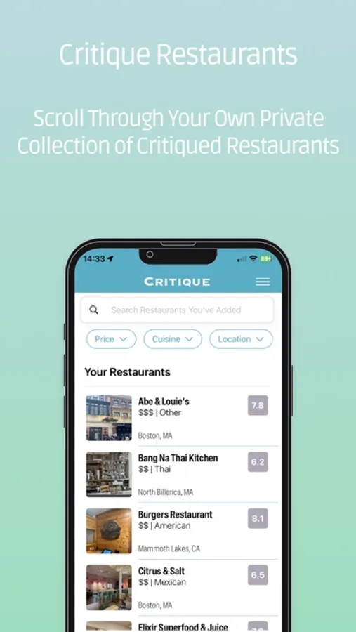 Introducing Critique, your ultimate dining companion that elevates your restaurant experiences to new heights! Discover a delightful world of flavors, ambiance, and culinary adventures, all at your fingertips. Unlimited Critiquing capabilities.