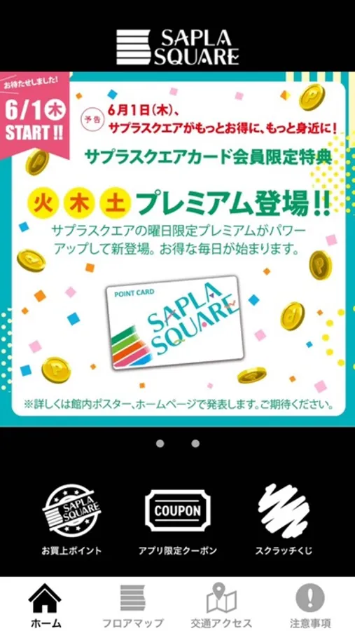 サプラスクエアの最新情報やイベント情報、限定クーポンなどをプッシュ通知でお届けする便利なアプリです。