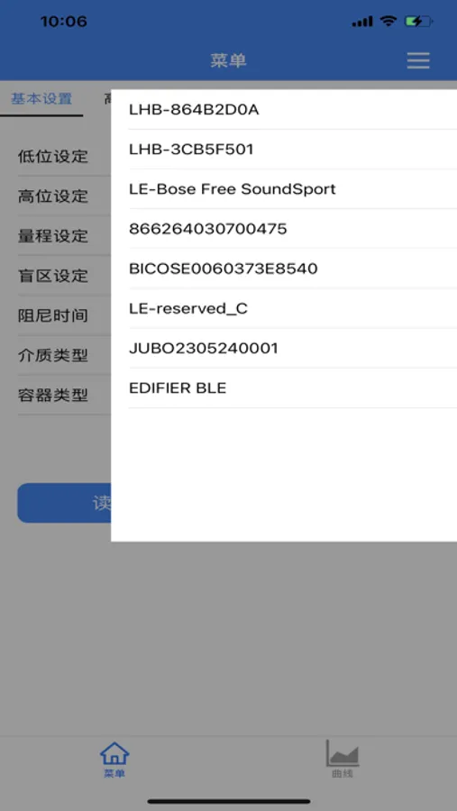 万物互联是一款配合硬件 雷达物位计 液位计 用于蓝牙连接方便调试的工具