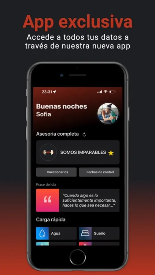 ¡Bienvenidos a nuestra aplicación de fitness y control de peso! Aquí encontrarás la herramienta perfecta para llevar un estilo de vida saludable y alcanzar tus metas de bienestar. Nuestra aplicación te ofrece una experiencia completa y personalizada para ayudarte a mantenerte en forma, perder peso y mantener un equilibrio físico y mental óptimo.