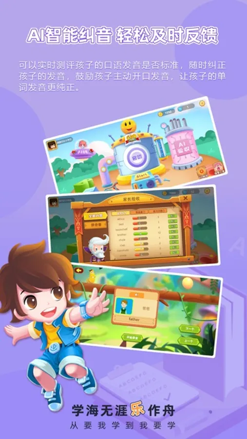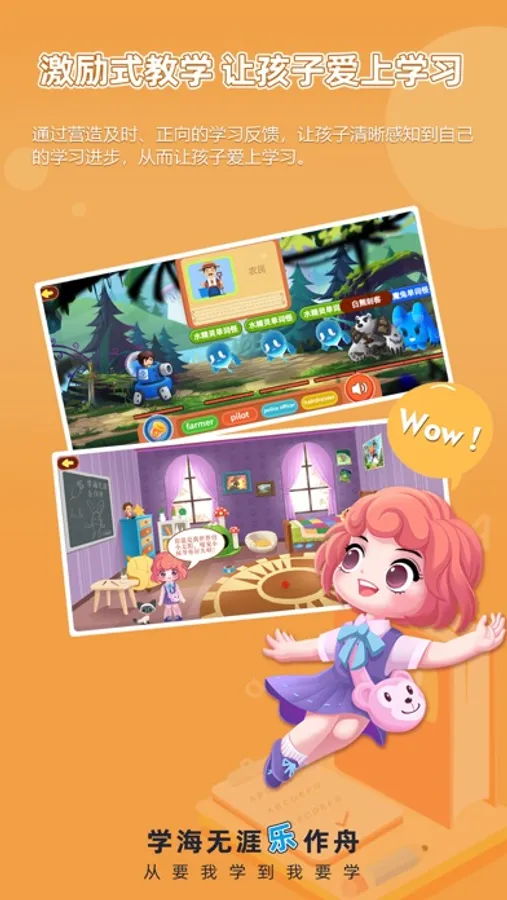 《乐作舟单词神器》是一款专为孩子设计的专业英语单词学习APP,致力为孩子打造强大的激励式学习过程和轻松愉悦的学习感受!通过动画场景教学及多模式练习方式,在乐中学、玩中练,让孩子从爸妈要我学到我自己要学!