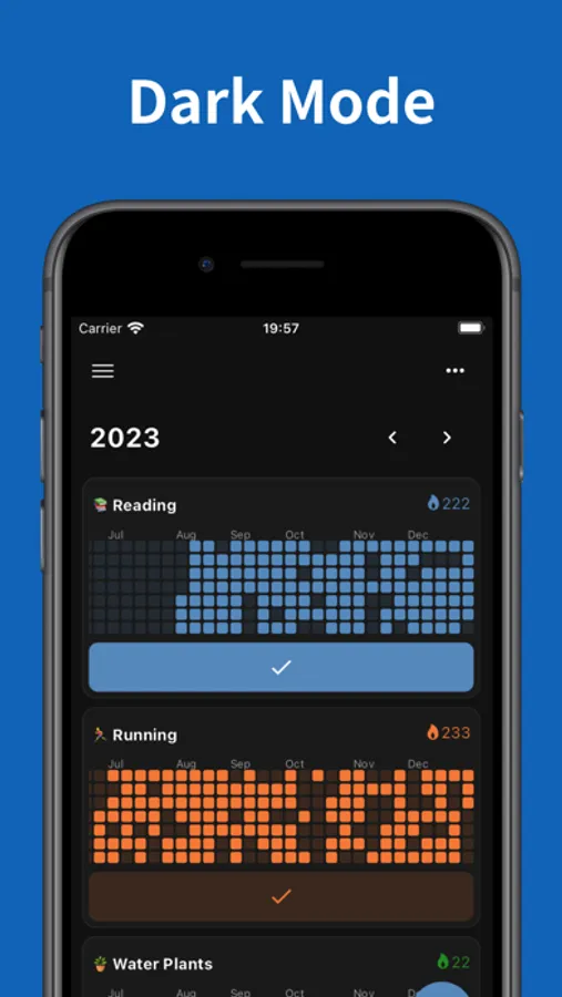 Dots is built with simplicity in mind. A single tap on the home screen is all it takes to record your progress, making consistency a breeze.