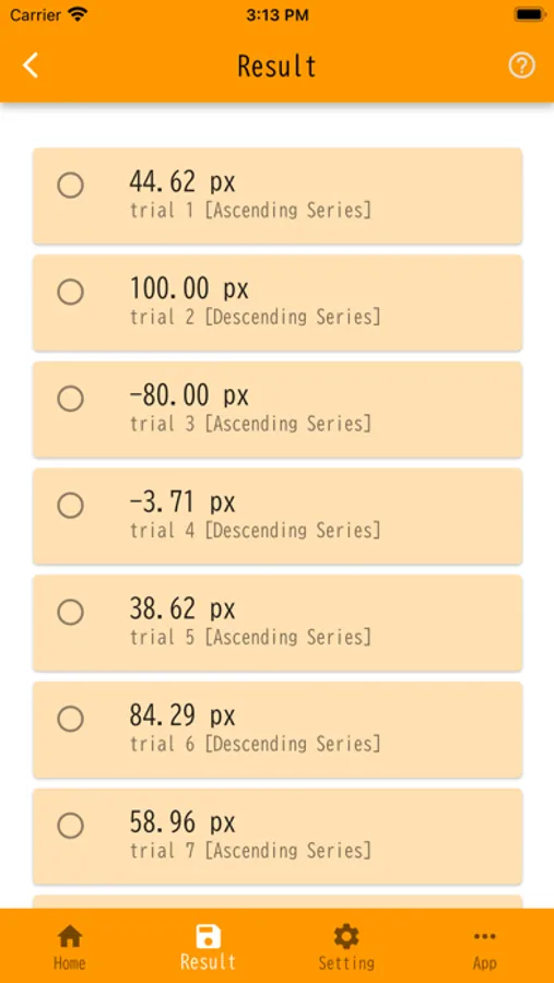 A total of 10 trials can be recorded as one set, and the results will be overwritten when the next set is performed.