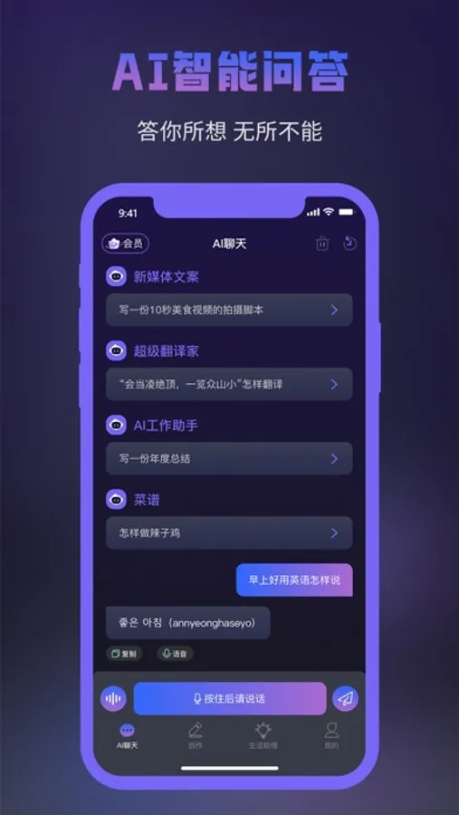 您可以与人工智能进行对话互动,让他回答问题,协助创作,帮您获取信息、知识和灵感。