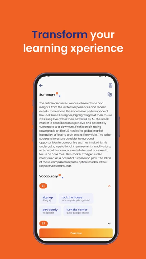 - Enhance your comprehension with our AI: provide summary, notable vocabulary, and a quick test to revise