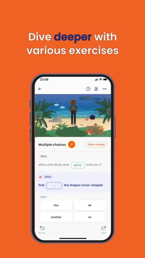 - Offer various interactive learning modes: Watch with subtitles, Fill in the blanks, Multiple-choice, etc.