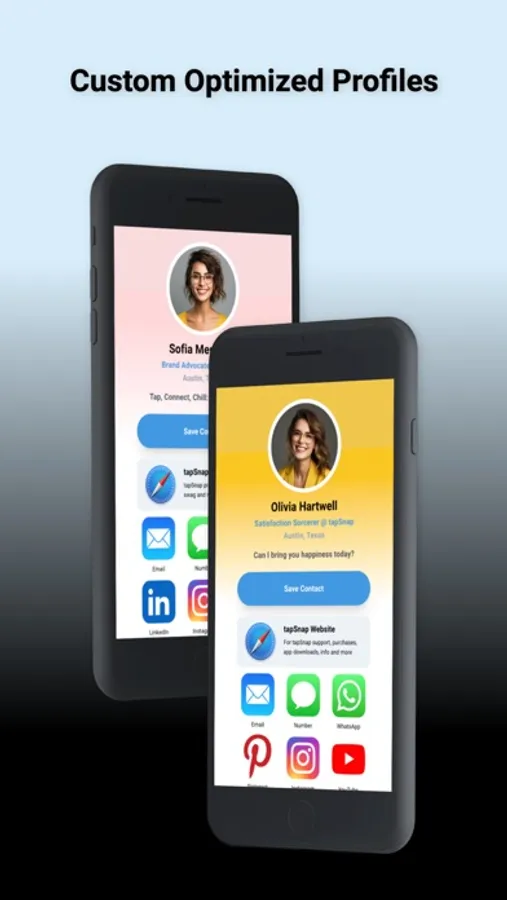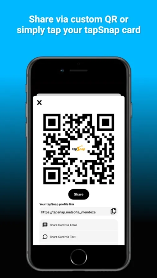 Welcome to the premier digital business card application designed for both individuals and teams. Our innovative QR codes and intelligent features let you share your contact details, social media, files, videos, and more through a simple tap of your tapSnap device or a scan of your tapSnap QR code. The best part? The recipient doesn't require a specific app or a tapSnap device to get your details.