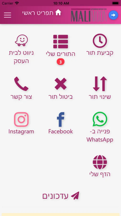 באפליקציה אפשר לקבוע תור, לנווט באמצעות Waze ולפנות אליי באמצעות WhatsApp.