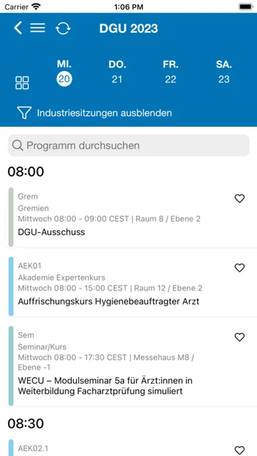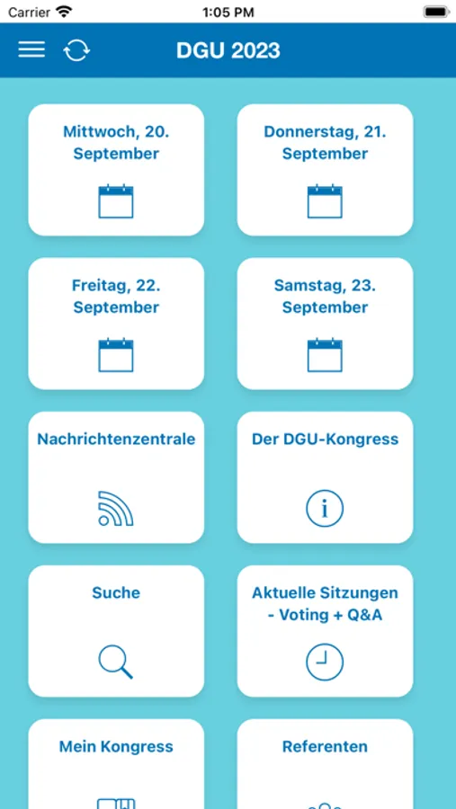 APP für den Kongress vor Ort, mit allgemeinen Informationen, Programmübersicht, TED funktion, Aussteller-Verzeichnis und Plan sowie vielen weiteren Optionen.