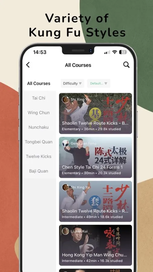 Diversified Chinese martial arts: Covering various Chinese martial arts such as Tai Chi, Wing Chun, Nunchaku, BajiQuan,Shaolin Twelve Route Kicks, Shaolin Datong Arm Boxing, etc., allowing you to experience a rich and colorful martial arts culture.