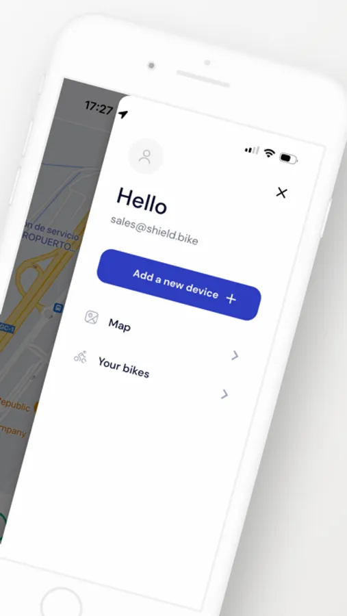 The application has a fully automated account registration process and adding new Shield.Bike devices to the account