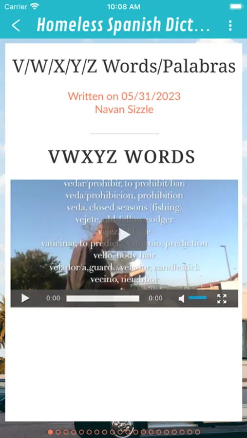 This is an English/Spanish Dictionary acted out from A-Z. While living in my car for over 2 years in California I taught myself Spanish, making mistakes and creating innovative ways to learn. Furthermore, I ultimately tested at a level B2 level (which is the same level needed to be a school teacher). I converted the English/Spanish Dictionary into two stories from A-Z, and shortly after I attempted to reinact the entire English/Spanish Dictionary. The videos have music in the background (HipHop,Piano,etc.) and the English/Spanish words appear on the screen as I attempt to act them out. On the home tab you will find my social media links and a video illustrating my journey. Please Support.
