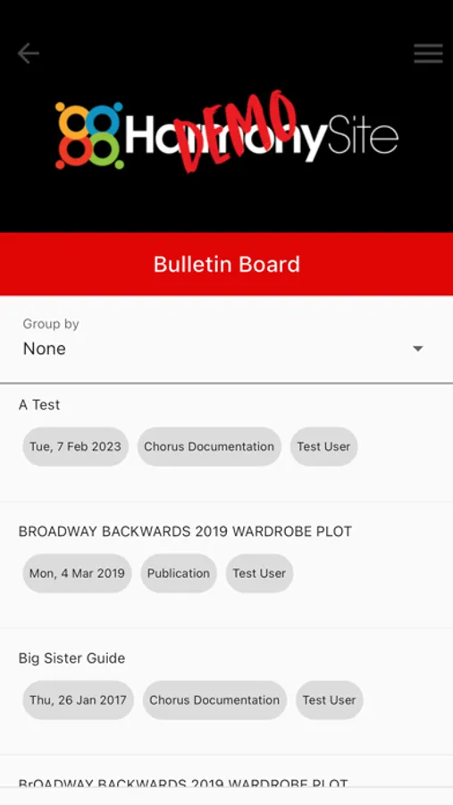 View all items on your HarmonySite's Bulletin Board, Documents list, Teaching Resources, Rehearsal Recordings, etc
