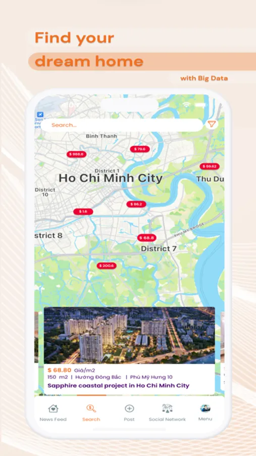 • Find your dream home with a big data store with powerful Filters for district, view, price, and more.